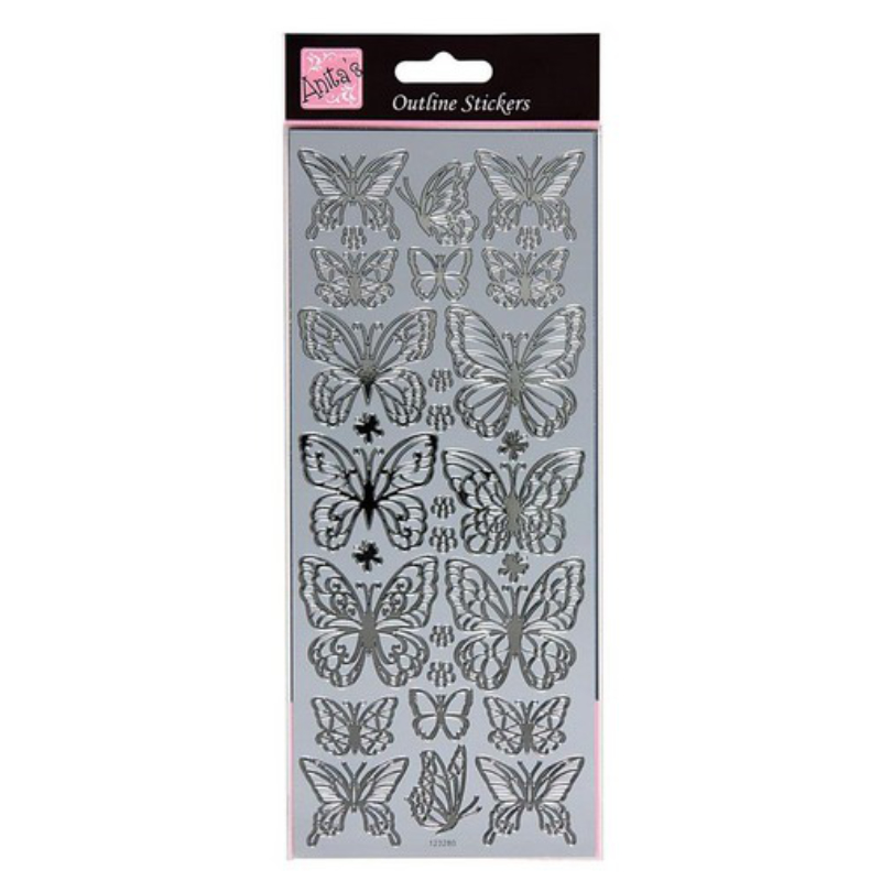 Silver foil butterfly stickers, great for card making.